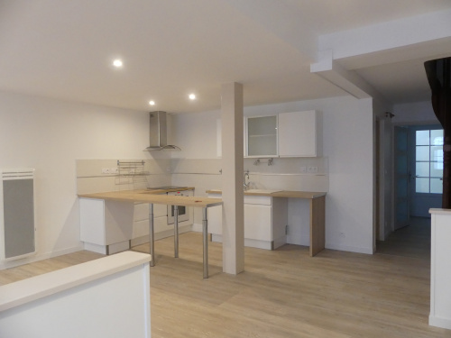 Située dans village, proche bourg tous commerces et tous services, maison des années 60 entièrement restaurée, terrain 1050 m², sous sol : garage, buanderie. Salle à manger avec poêle à bois, salon, cuisine équipée, 3 chambres, salle de bains, wc. Libre 25 Octobre 2016 Honoraires agence : 468 Â?€